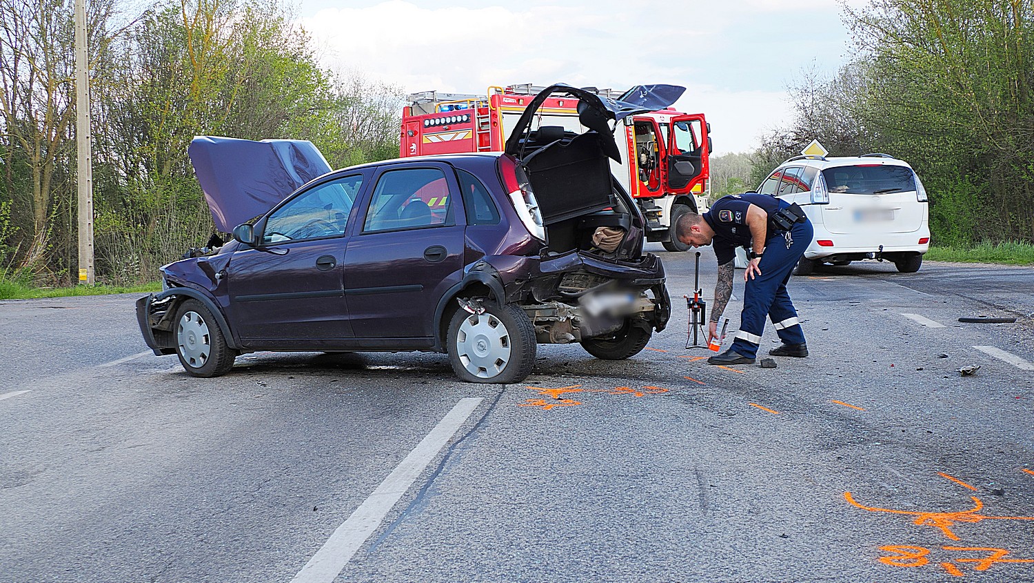 Információnk szerint a középső fekete járműben egyedül ülő fiatal nőt és az utolsó autóban lévő férfit a mentők kórházba szállították. Ebben az utolsó kocsiban még egy kutya is volt, őt az állatmenhely munkatársai vitték el.