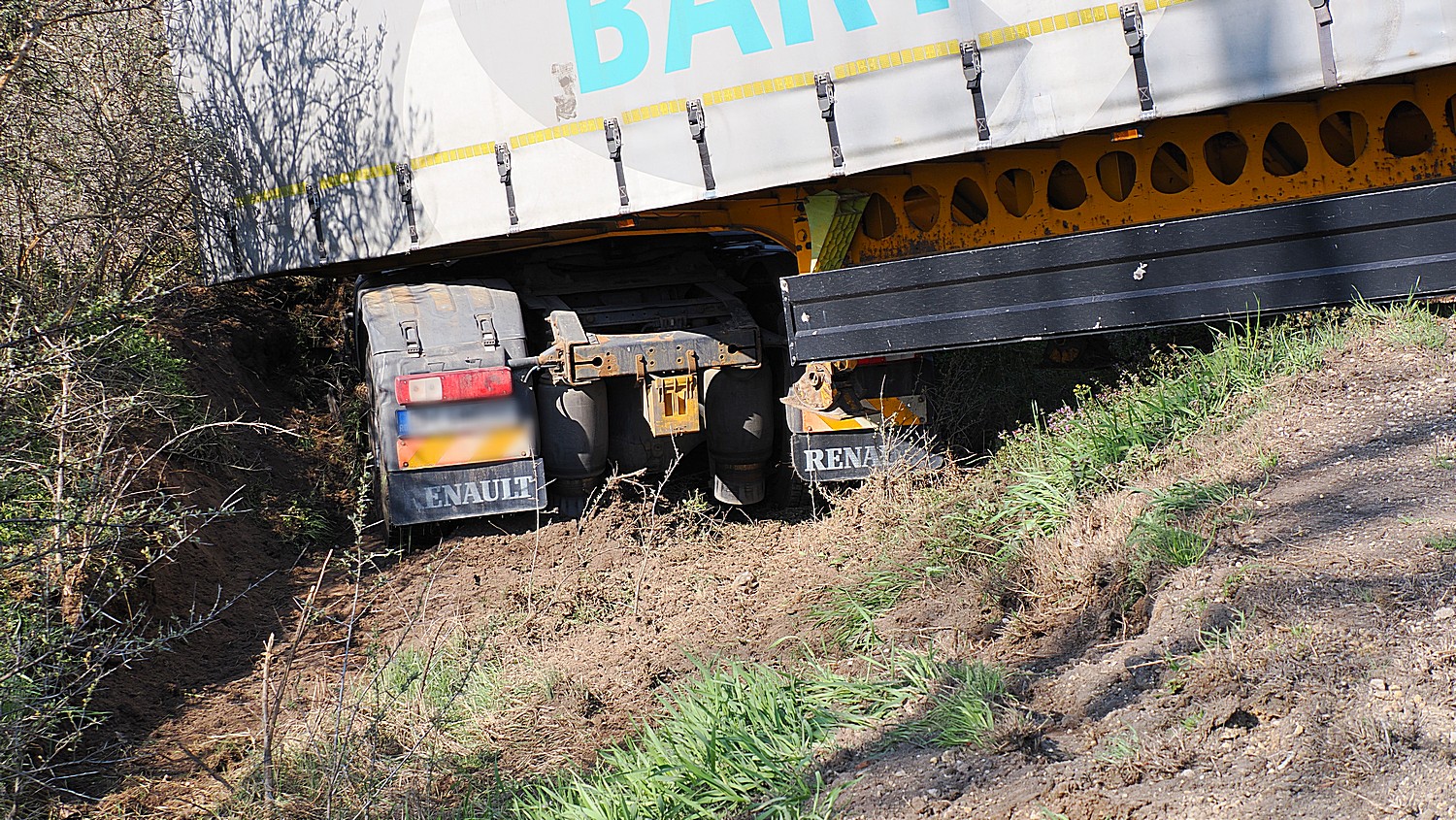 Árokba hajtott egy nyerges vontató Nyárlőrincnél