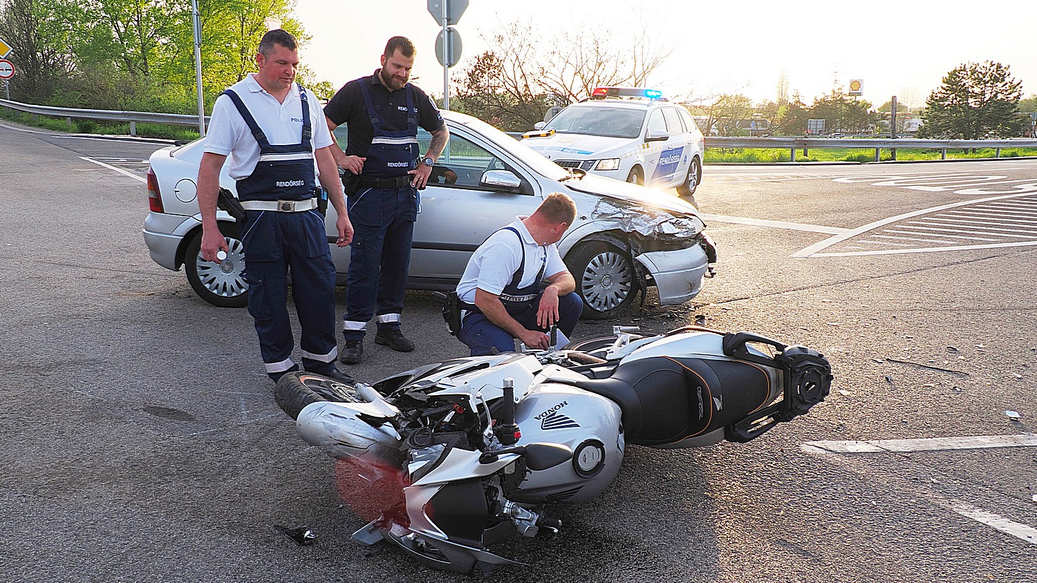 Információnk szerint Cegléd felől érkezett a motoros férfi, és amikor az M5-ös felhajtóhoz ért, a szemből érkező autó balra nagy ívben kanyarodott, aminek vezetője nem látta a motorost és elé hajtott, ekkor ütköztek össze. A 25 év körüli motoros férfit a mentők súlyos sérülésekkel szállították kórházba, a gépkocsiban ülő idősebb férfi és nő nem sérült meg. A balesethez ért oda egy motoros férfi, aki elmondta, hogy ő értesítette a mentőket, mert a sérült fiatal a motorja mellett feküdt az úttesten. Szerinte az volt a szerencséje, hogy az összes védőfelszerelés rajta volt, de így is súlyosan megsérült. Elmondta még, hogy a motoros nem ment gyorsan, csak a kanyarodó autó vágott elé, ezért zuhant az úttestre. Ezen a helyszínen pár órával korábban két személyautó ütközött össze, ott mindkét sofőrt a mentő szállította kórházba.