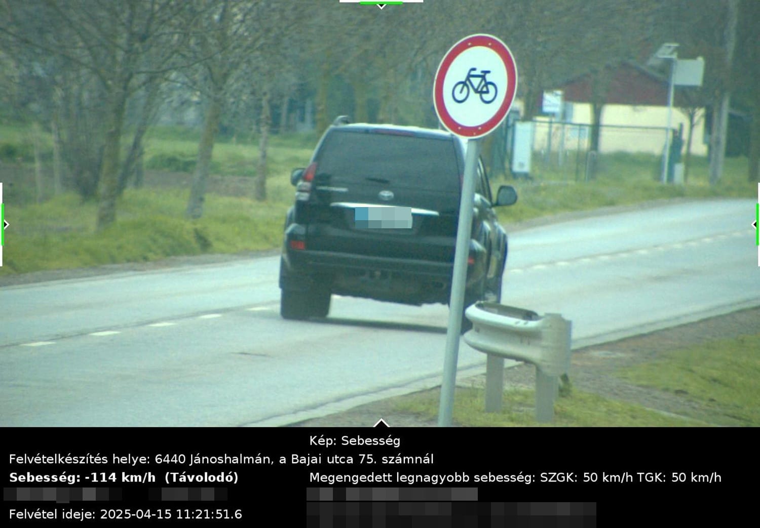 Az elmúlt héten a megengedett sebességhatárokat regisztráltan 1736-an lépték át. A szabálytalankodóknak legalább 50.000 forint közigazgatási bírságot kell fizetniük, a kiszabható büntetés összegének maximuma pedig 468.000 forint. Annak a sofőrnek, aki Jánoshalma belterületén a megengedett helyett 114 km/h-val vezette autóját, 210.000 forintot kell fizetnie. Ez a jogsértés 6 büntetőponttal jár, amennyiben a szabálysértőt a helyszínen megállítják.